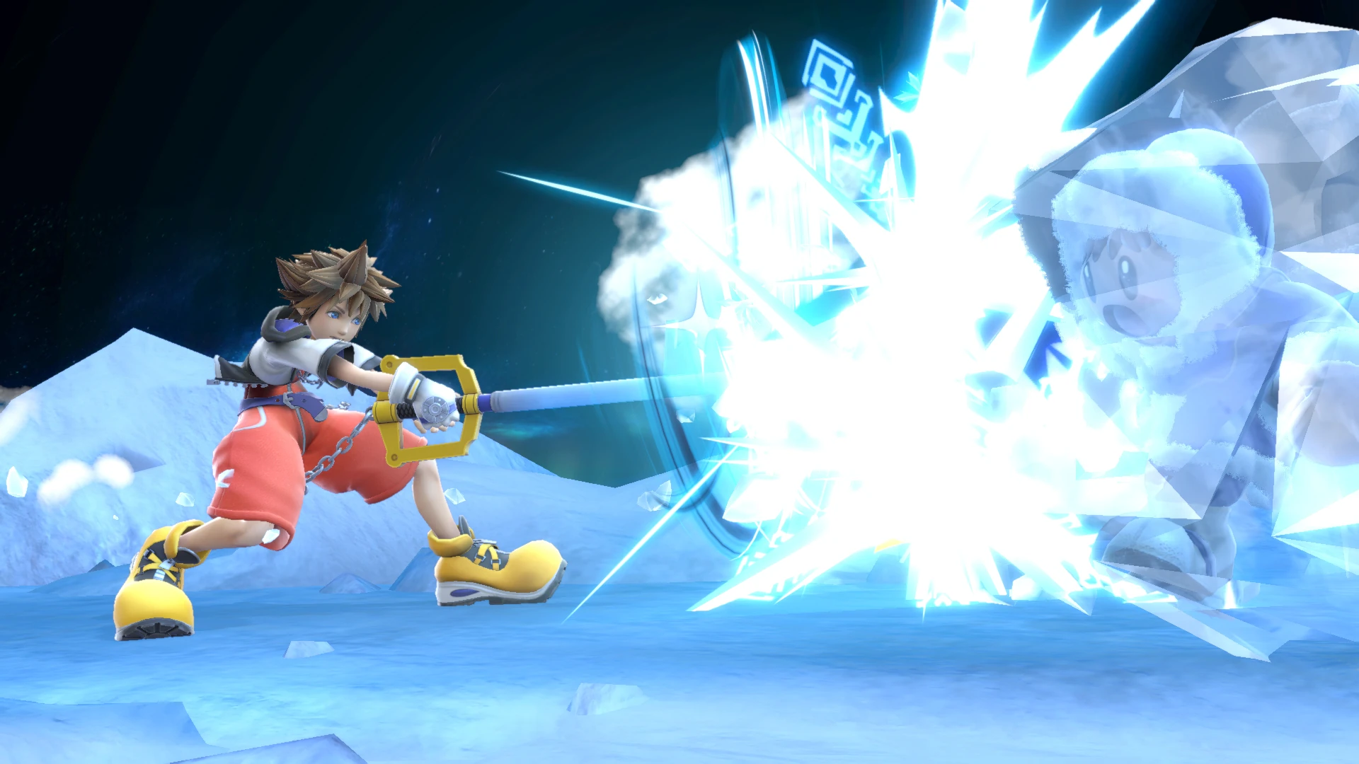| Lucas | PK Freeze | Shoots an ice crystal out of his head which travels downwards and towards whatever direction Lucas is facing, though he can guide it horizontally slightly. It explodes after travelling a set distance or when the player stops holding the Special button. If it hits an opponent, they will become frozen. |