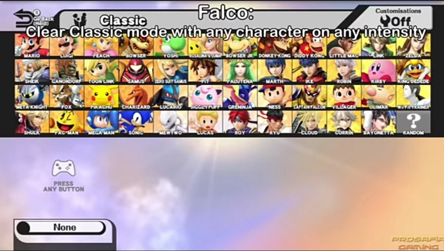 - Sakurai considered on having all characters available from the start in Super Smash Bros. for Wii U, but decided to add unlockable characters due to the fans looking forward to the “Challenger Approaching!” segments.