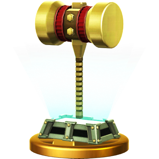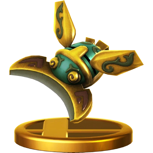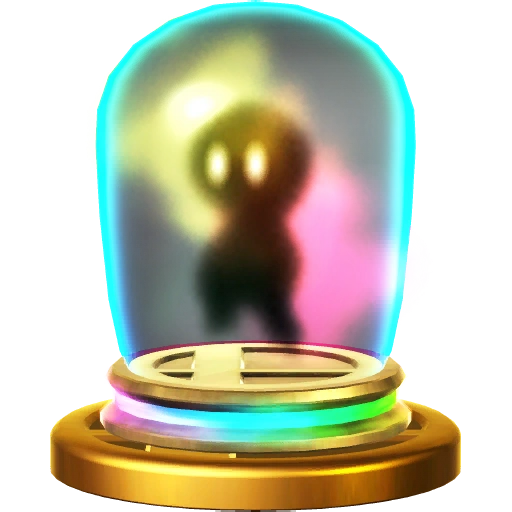 In the Wii U version, the trophy of the player's character is put in an arena along with other characters' trophies. The player can move their trophy around the arena, and if it touches a group of trophies, it will be tossed into a battle with those characters (a faint image of the stage will be under the base of the trophies). After the fight, all the defeated characters' trophies will be launched out of the arena, and the remaining trophies will organize in new groups.
