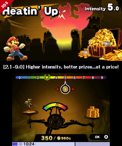 Players are able to alter their "Fighter Balance": a system where gold is spent to adjust the intensity level. The higher the intensity, the smarter opponents will be, and the greater a player's rewards will be when victorious. Among those rewards are gold, trophies, and items for character customization.