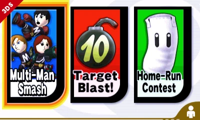 A mode comprised of the Multi-Man Smash, the new Target Blast, and the Home-run Contest.