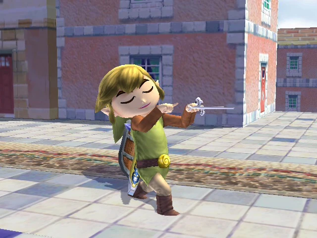 - Toon Link's artwork is identical to his artwork in The Legend of Zelda: The Wind Waker, although he has both his sword and shield and the parting of his hair is reversed.
