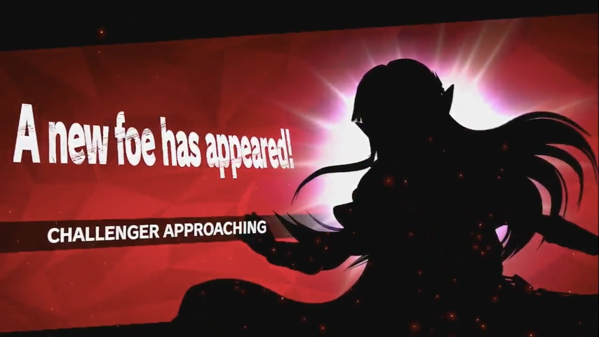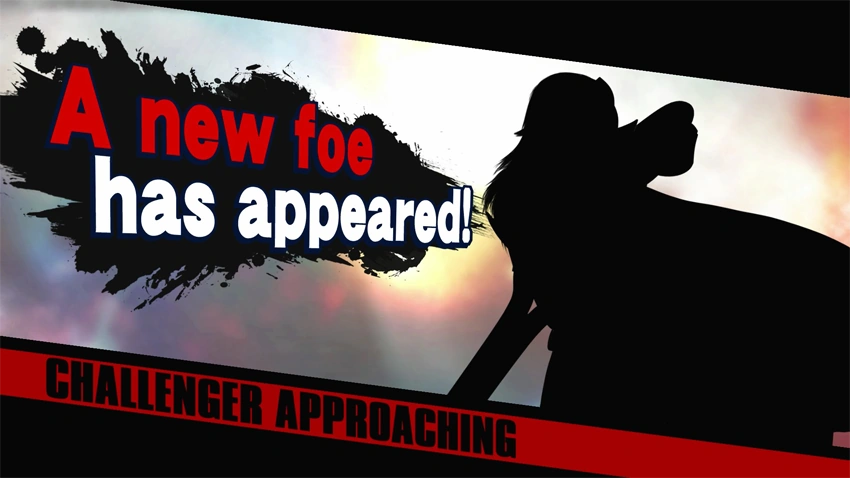 The Challenger Approaching! screen which Zelda challenges the player in Super Smash Bros. Ultimate