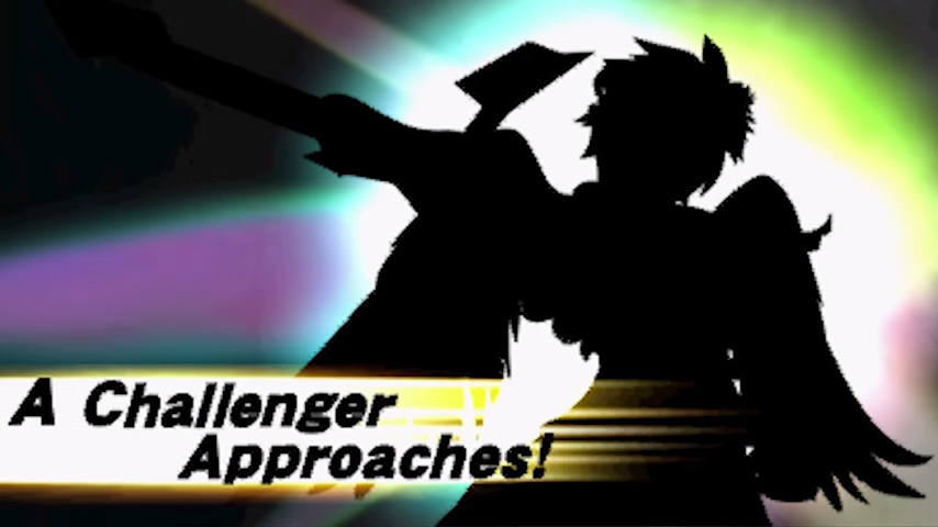 The Challenger Approaching! screen which Dark Pit challenges the player in Super Smash Bros. for Nintendo 3DS