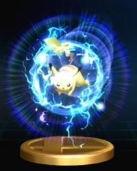 When Pikachu uses this attack, it temporarily turns into a gigantic pulsing ball of electricity. The ball of electricity will then fly around the stage at great speeds, and the direction Pikachu goes during this move can be controlled by the player. When an opponent is hit, they take between 10% to 20% damage, depending on how much of the attack hits the opponent and how fast Pikachu is moving.
