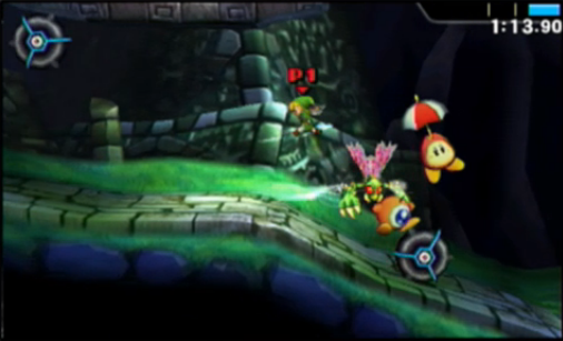 Although King Dedede's Waddle Dee Toss has been exchanged to Gordo Toss, Waddle Dee makes a return as a common enemy for Smash Run, exclusive to the 3DS version. They appear in two various forms, one as a normal type Waddle Dee which walks around, another as a Parasol Waddle Dee which floats slowly from air. If a Parasol Waddle Dee is defeated, the parasol itself will hover into the air dealing rapid minor damage to fighters who touch it.