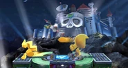 The stage is a platform stage with platforms from the Mega Man games, such as Guts Man's platforms and Bright Man's. Around every minute the Yellow Devil will appear from the castle to interfere with the battle. Hitting the Yellow Devil's weak point (its eye) multiple times will cause it to explode, harming all nearby opponents except the player who gave the finishing blow and the KOs credited to the said player. If it isn't destroyed, the Yellow Devil will go away and come back again later.