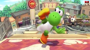 - Down Taunt: Jumps cheerfully saying "Yoshi, Yoshi!" and waving his hands.
